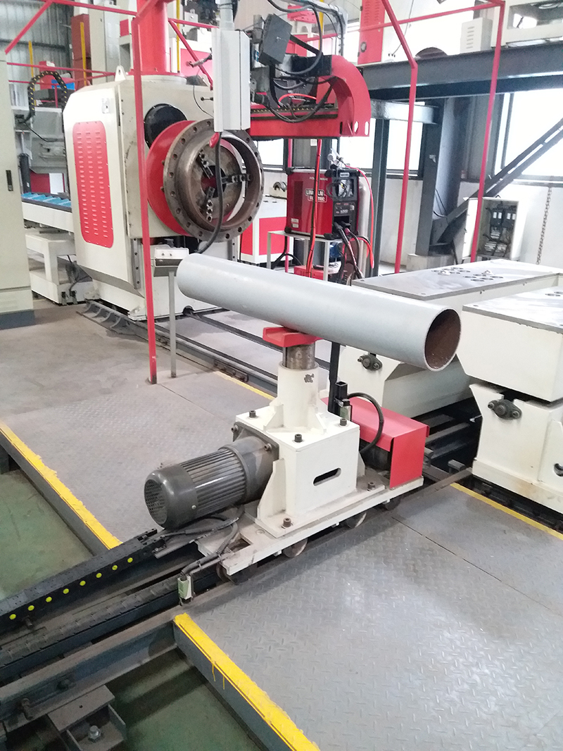 三、 性能特点:可完全取代翻转机构;可安全平稳快速地实现管子的横向输送;2-3个单丝杆单导柱输送小车;18#轻轨轨道;电动升降、电动行走;变频无级调速;控制台手动控制(无线摇控选配)。